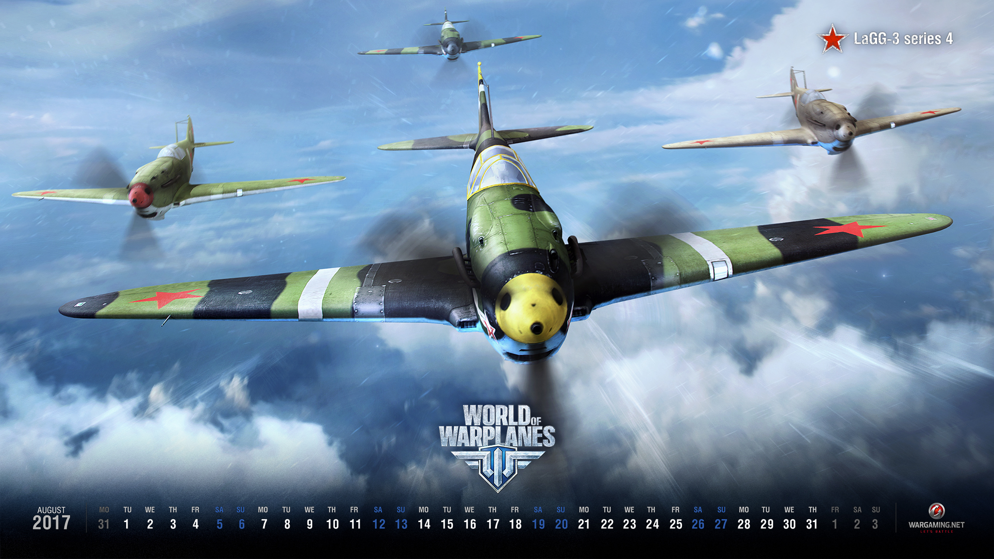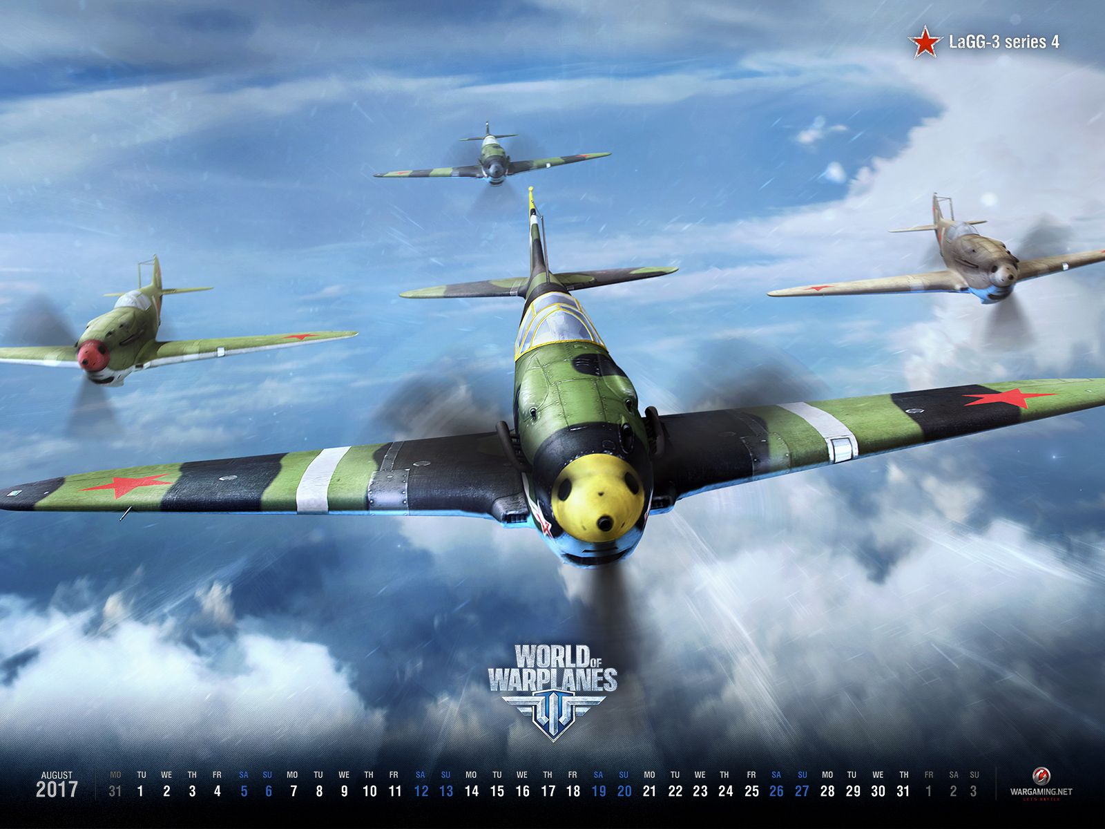 Das Wallpaper und der Kalender dieses Monats stellt die Lawotschkin LaGG-3 Serie 4 ins Rampenlicht, ein sowjetischer Jäger der Stufe IV, der dem Spiel mit dem Update 1.9.11 hinzugefügt wurde. Mit unglaublicher Feuerkraft dominiert die LaGG-3 Serie 4 Gefechte in niedrigen Höhenlagen und ihr müsst nicht lange darauf warten, sie in die Hände zu bekommen … Die LaGG-3 Serie 4 wird später in diesem Monat als Belohnung für spezielle Aufträge im Spiel erhältlich sein, mit denen wir den 19. Geburtstag von Wargaming feiern. Behaltet also den Himmel im Auge, Piloten!