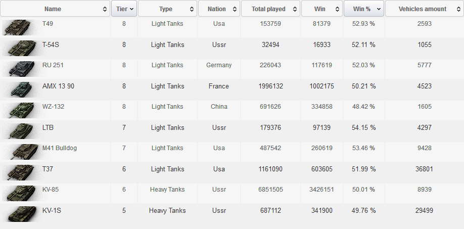 Stimme ich dir komplett zu allerdings sollte man immer noch ein wenig abwarten was da passiert besonders weil beim LTTB die Stats doch weit auseinander sind beim M41 aber recht gleich sind mit jeweils über 53% die anderen haben sich ja nach dem ersten Wert nach unten schon korrigiert. Aber es sieht so aus, dass in 9.5 oder 9.6 der Bulldog wohl den Nerf bekommt wenn die Statistik über den 53% bleibt.